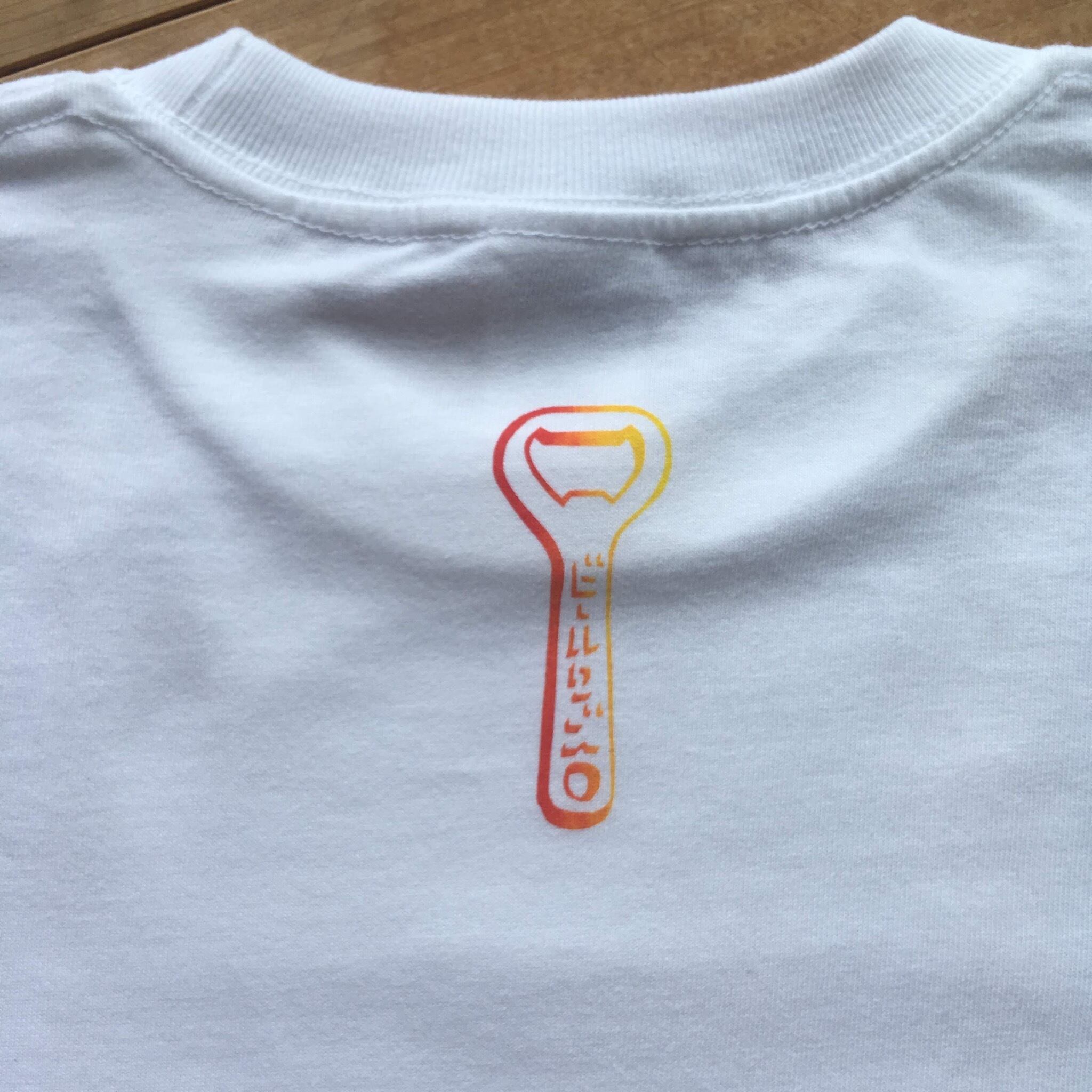 そしてバックプリントに瓶ビール好きには欠かせない栓抜きを。